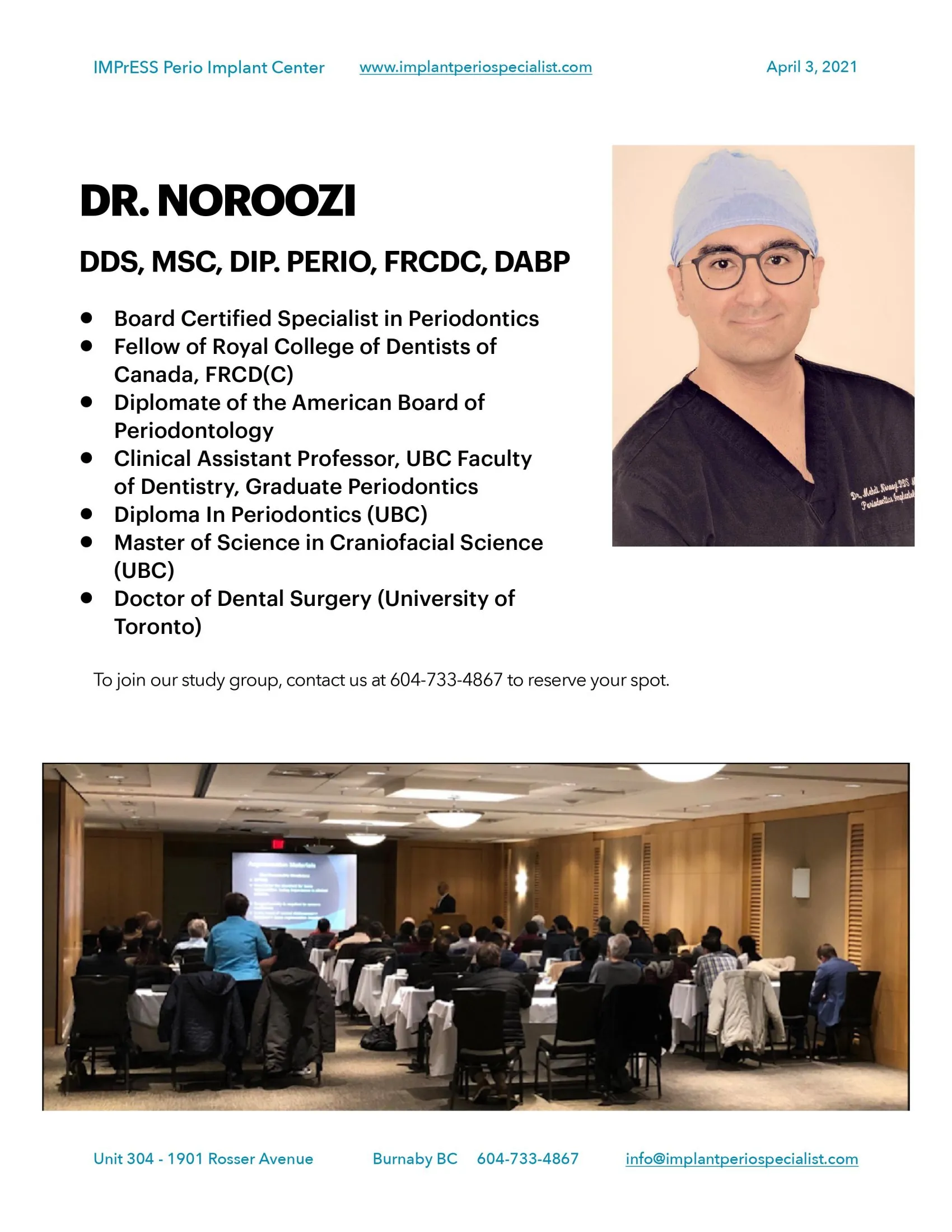 We are pleased to resume our in-person study club for dentists interested in advancing their knowledge and expertise in the fields of periodontology and implants.