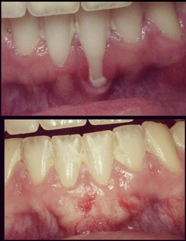 The role of gum tissue is to cover and protect the tooth root and underlying jawbone. When gum tissue recedes, the bone and other tissues that support your tooth’s root are also lost. The resulting root sensitivity may also make eating and drinking unpleasant or even painful. It’s important to identify and treat recession early. Left unchecked, recession could worsen to a point where the root becomes unprotected and teeth may loosen and fall out. When recession of the gingiva occurs, the body loses a natural defense against both bacterial penetration and trauma. When gum recession is a problem, gum reconstruction using grafting techniques is an option. A mucogingival defect creates a portal for bacteria to cause a periodontal abscess which can cause bone and tooth loss.