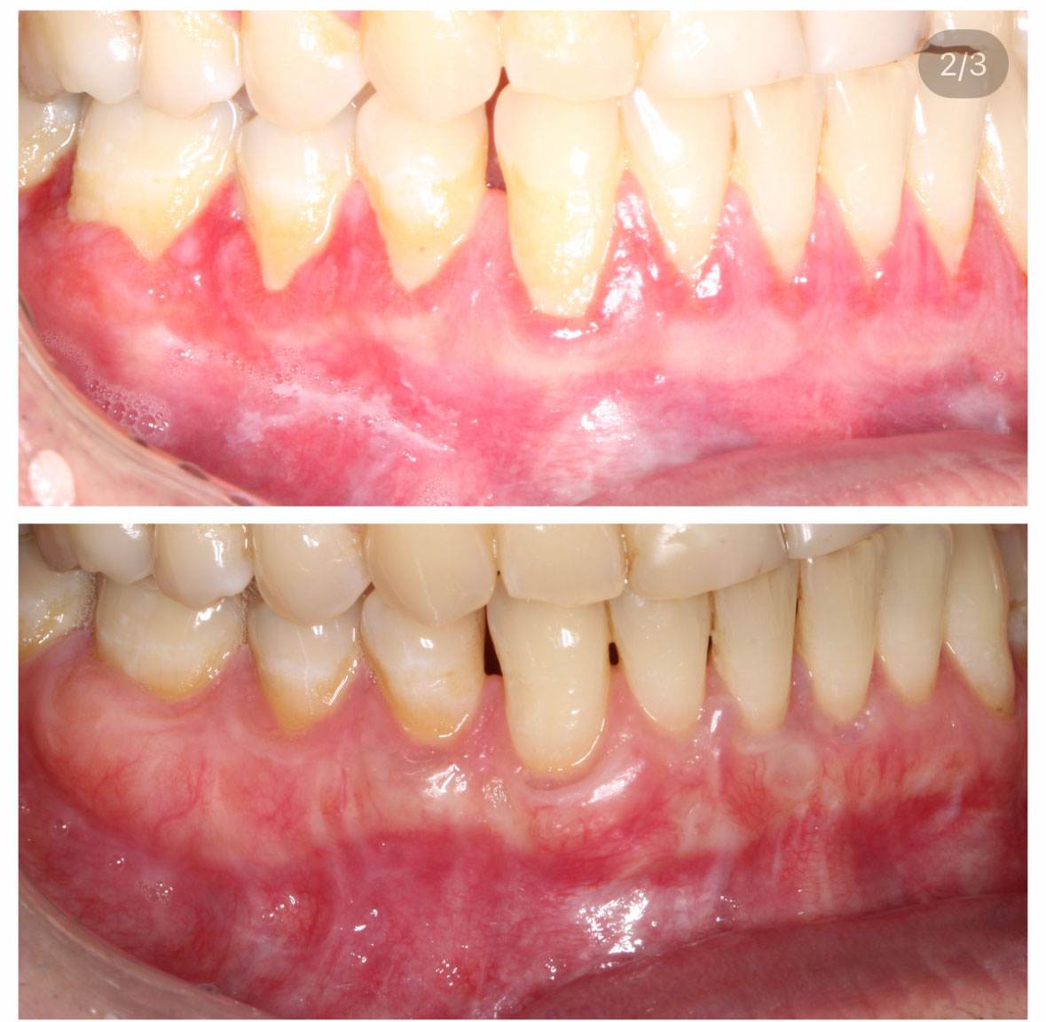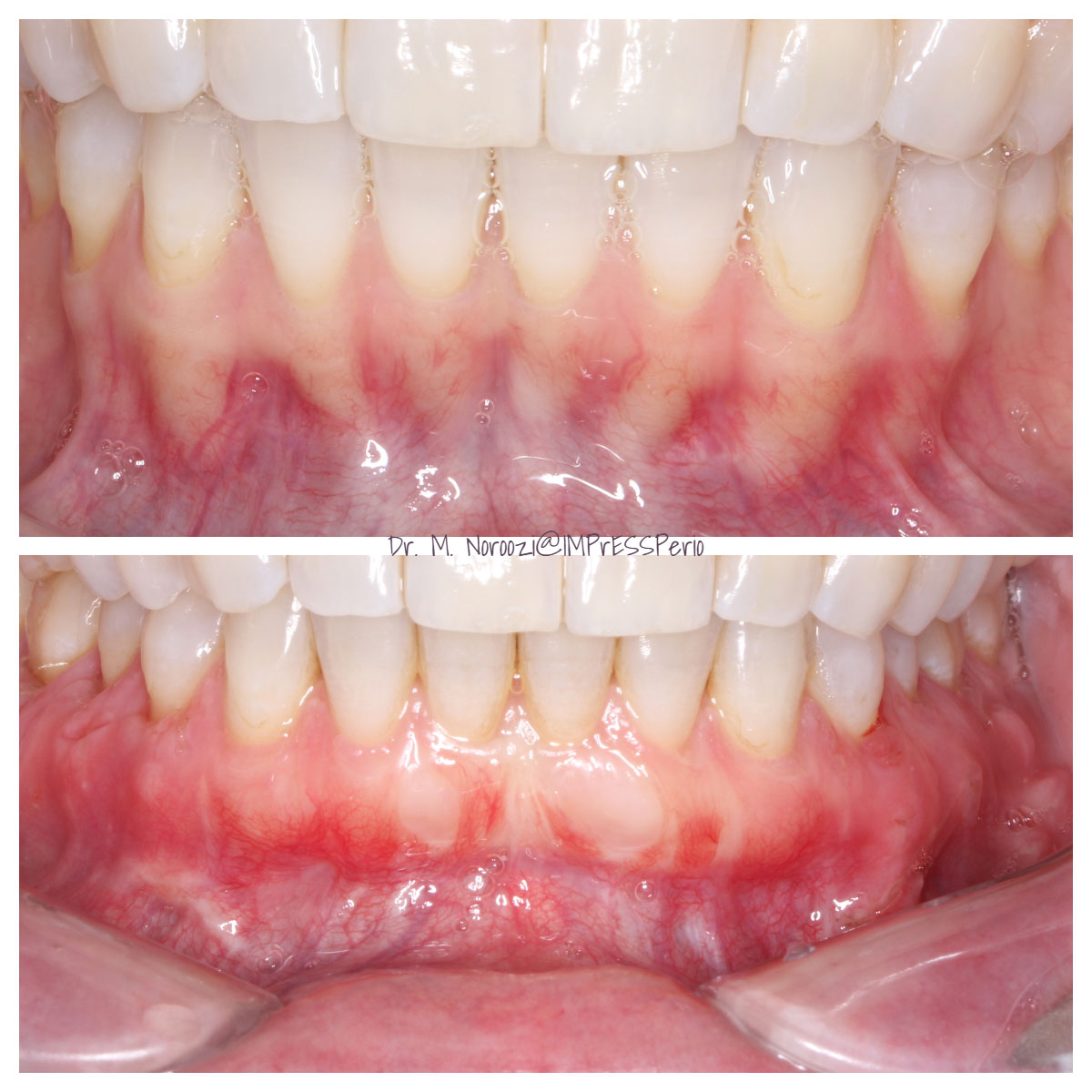 Free gingival graft – This procedure is often used to thicken gum tissue. A layer of tissue is removed from the palate and relocated to the area affected by gum recession. Both sites will quickly heal without permanent damage. The soft tissue in the oral cavity is classified as either keratinized or nonkeratinized based on the presence of keratin in the epithelium. In health, the soft tissue immediately around the teeth is keratinized and is referred to as keratinized tissue or gingiva.